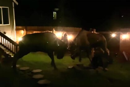 Watch: Moose Brawl Ends with Broken Fence, Yard Damage