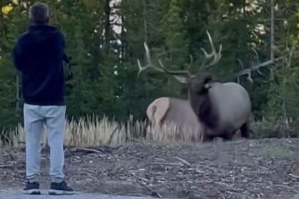 Watch a “Touron” Challenge a Rutting Bull Elk in Yellowstone National Park