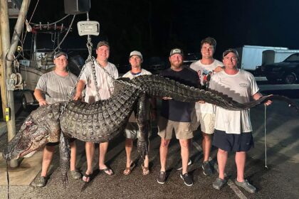 A group of six Alabama gator hunters took an absolute giant over…