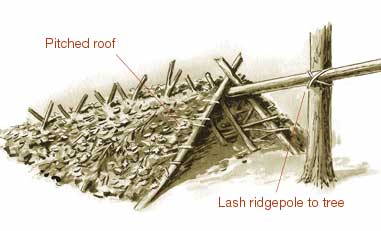 #4) A-frameThe pitched roof of the A-frame bough shelter offers more protection…