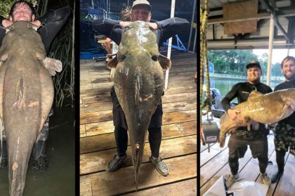 Two Texas anglers recently noodled an absolutely giant flathead catfish. Justin White…