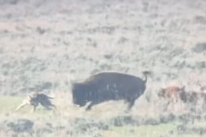 Watch a Mother Bison Defend Her Newborn Calf from a Pack of Wolves in Yellowstone