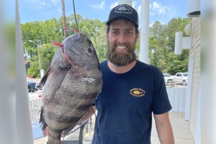 Virginia freediver Todd Elder holds up a record-sized sheepshead. IUSA The off-colored…