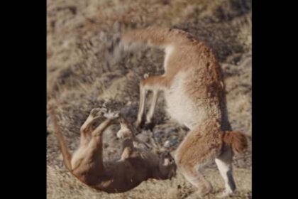 Watch a Mountain Lion Try to Take Down a Guanaco in Slow Motion