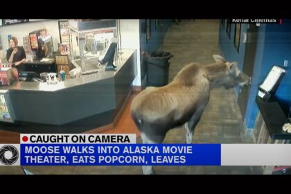 Watch a Moose Stroll into an Alaskan Movie Theater, Eat Popcorn, and Leave