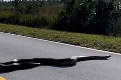 Watch an Absolutely Gigantic Python Cross a Road in Florida
