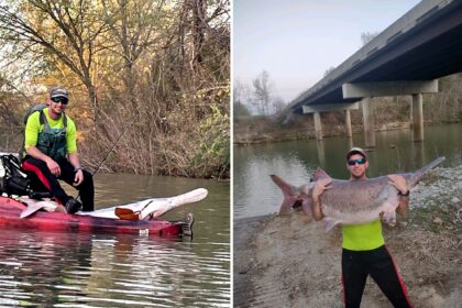 Arkansas Fisherman Lands Giant Paddlefish from a Kayak