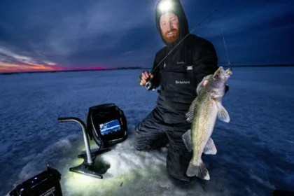 Dive into a frigid morning on Devils Lake backwaters with professional walleye…