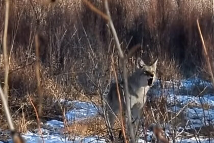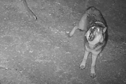 Newly-released footage out of California shows a wild wolf stepping into the…