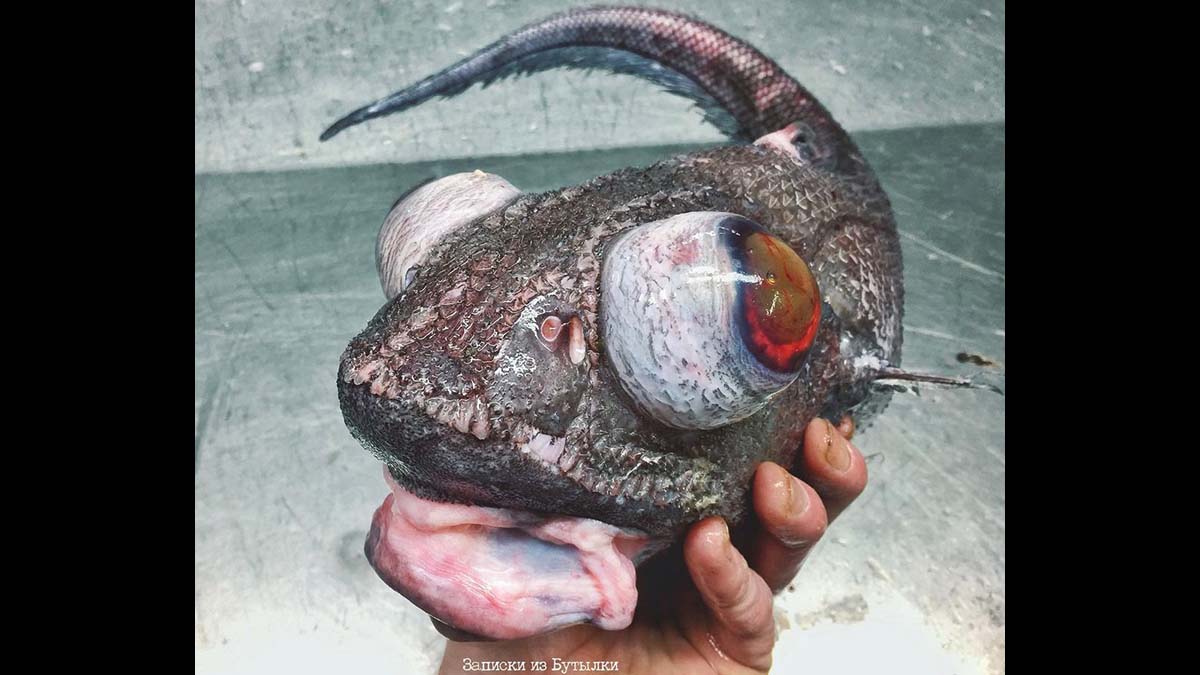 On April 8, Roman Fedortsov, a commercial fisherman who operates a deep-sea trawler out of Murmansk, Russia, posted a picture of one of the strangest fish you’ll ever set eyes on. Fedortsov is known for the oddball fish he catches but this one outdoes the rest. The fish sports a fleshy pink mouth and a scaly black body extending to a lizard-like tail. The fish’s eyes are protruding grotesquely.