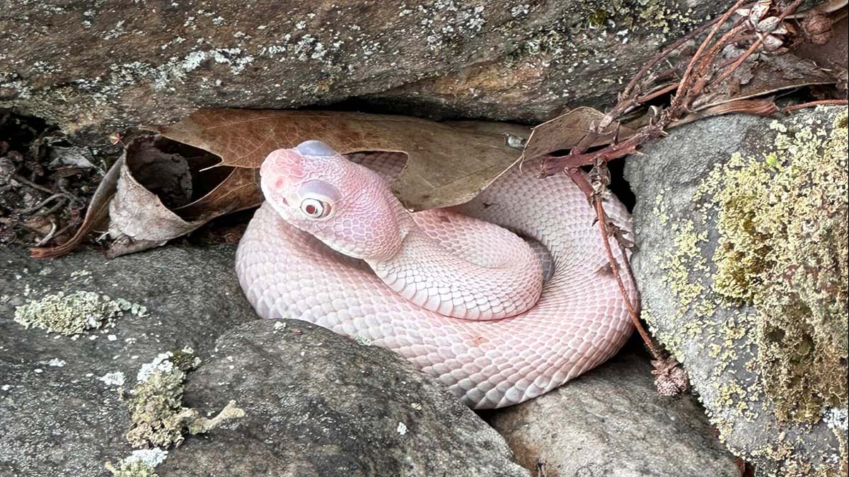 According to Smithsonian’s National Zoo & Conservation Biology Institute, timber rattlesnakes are widespread across the U.S. They are venomous but are considered more docile than other rattlesnakes, and bites on humans are rare. Albinism is rare in wild rattlesnakes, especially because albino snakes are unable to blend into their environments as well as their normally pigmented counterparts—leading to increased mortality. McCombie did not disclose the exact location of the albino rattler and left it undisturbed.