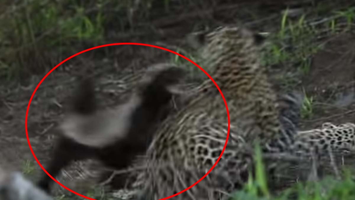 The leopard pounced on the badger and pinned it down. That’s when the video footage begins—showing the leopard with the small badger firmly gripped in its jaws. But then, another honey badger—almost certainly the small cub’s mother—comes charging at the leopard full force. Despite its small stature, the momma badger causes the leopard to jump out of fear before running it off a safe distance. See it for yourself below.