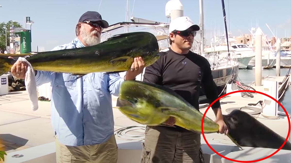 The video was recorded and shared on YouTube by ASOB Productions in 2013. The production company was filming an episode for its series “Adventures South of the Border TV show” in the legendary waters off of Cabo San Lucas. Mike “The Griz” Ritz and Chef Yvan Mucharrz had a successful day and were celebrating two big mahi mahi — when misfortune struck. While taking a picture with their catches, a sea lion lurched out of the water and pulled one right out of the hands of Mucharrz.