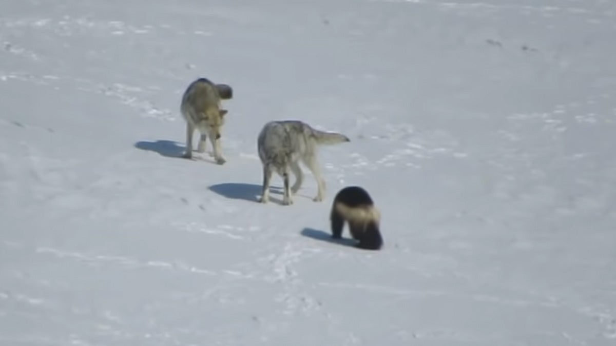 There’s not much background info on the epic video, except that it was posted to YouTube by AJ Survey in April 2020. It starts with a wolverine plodding along a snowy landscape as two wolves stand nearby. At first, the wolves don’t seem too interested in the lone critter. But soon, they run toward it, face it down, and attack. One wolf growls and bites at it from the front while another tries to flank it. Meanwhile, the wolverine spins quickly and lunges at its attackers. After a couple of minutes in which minimal damage is inflicted, the wolves seem to give up, and the wolverine saunters way as though nothing unusual has happened. See it for yourself below.