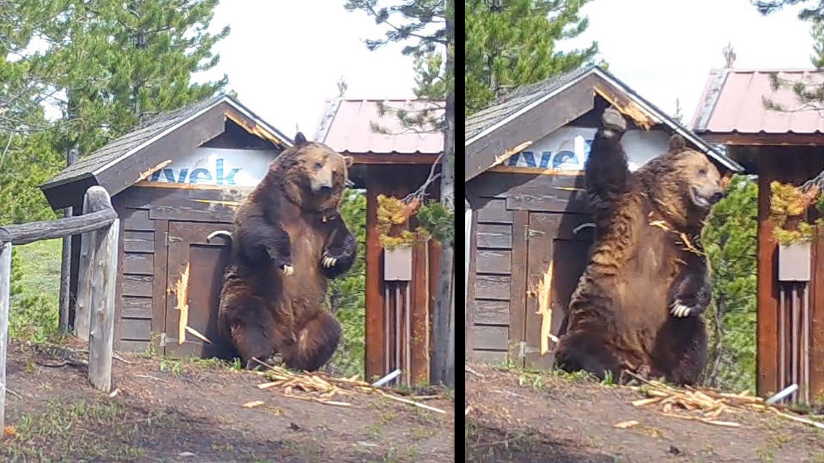 The photos are really a sight to behold. The big grizzly bear dwarfs the small storage shack as it rubs its back against it with a characteristic nonchalance that rivals that of Baloo in The Jungle Book. Justine Vallieres, a wildlife management specialist for Montana Fish, Wildlife, and Parks (FWP), estimates that the “huge” bear was in the 700- to 800-pound range. According to the FWP, the average male grizzly in Montana is only 400 to 500 pounds.