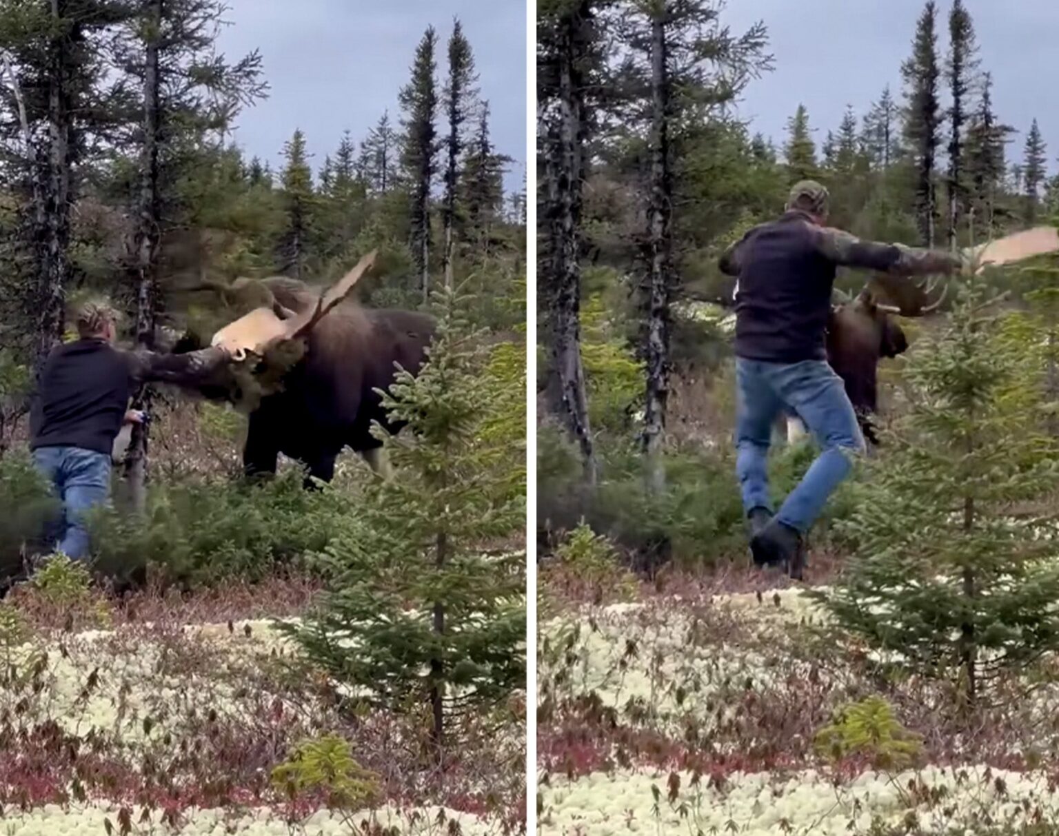 A video that was shared to Facebook on Oct. 13 shows a Québécoise man challenging a bull moose with nothing more than a flimsy pieces of wood and a spray bottle. Somehow, the hunter walked away from the fight he picked without being flattened. The more important question isn’t how he did this, but why?