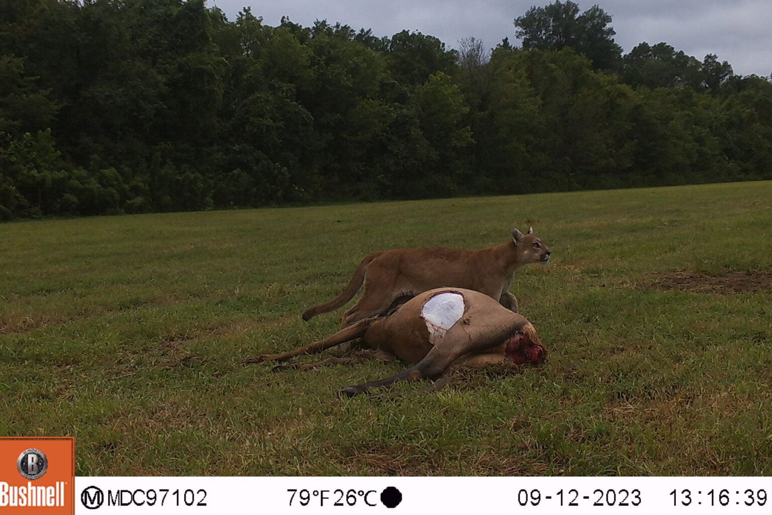 On Tuesday, September 12, a mountain lion was photographed feeding on a cow elk carcass in Shannon County, Missouri. According to the Missouri Department of Conservation (MDC), it was the first mountain lion sighting of the year in the southern Missouri county, which sits in the northeastern corner of the Ozark Mountain range, about 160 miles southwest of St. Louis.