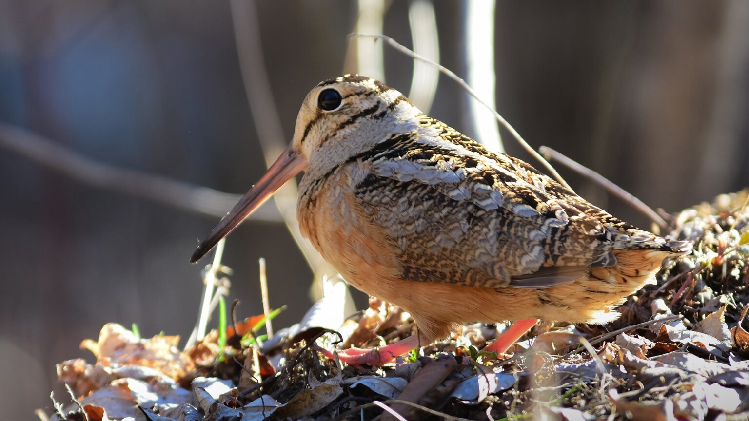 The woodcock is a shorebird without a shore. Only a little bigger than a robin, these bird’s are related to other shorebirds like the Wilson’s snipe. Like other shorebirds, they use their long bills to probe for food, such as earthworms. But instead of beaches and saltwater marshes, woodcock are found where boggy, muddy areas meet with dense cover and young forests. The edges of beaver ponds and meandering lowland seeps are hotspots. Woodcock can also be found mixed in with ruffed grouse in aspen stands and thickets of dogwood and hawthorn.