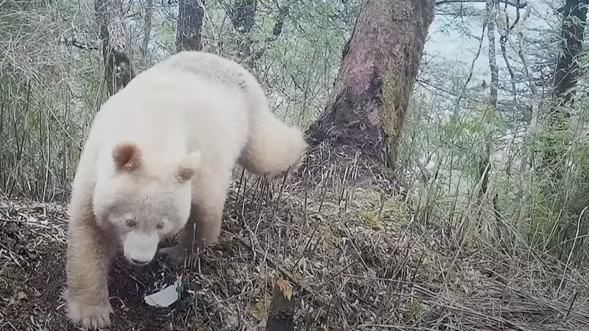 Last week, we covered a rare all-white grizzly bear photographed in Canada. Now, here’s an albino panda in China. According to China Daily, infrared cameras installed at Wolong National Nature Reserve captured footage of the all-white bear in February. The video shows the unusual animal approaching a regular sow panda with one cub in the country’s southwestern region.