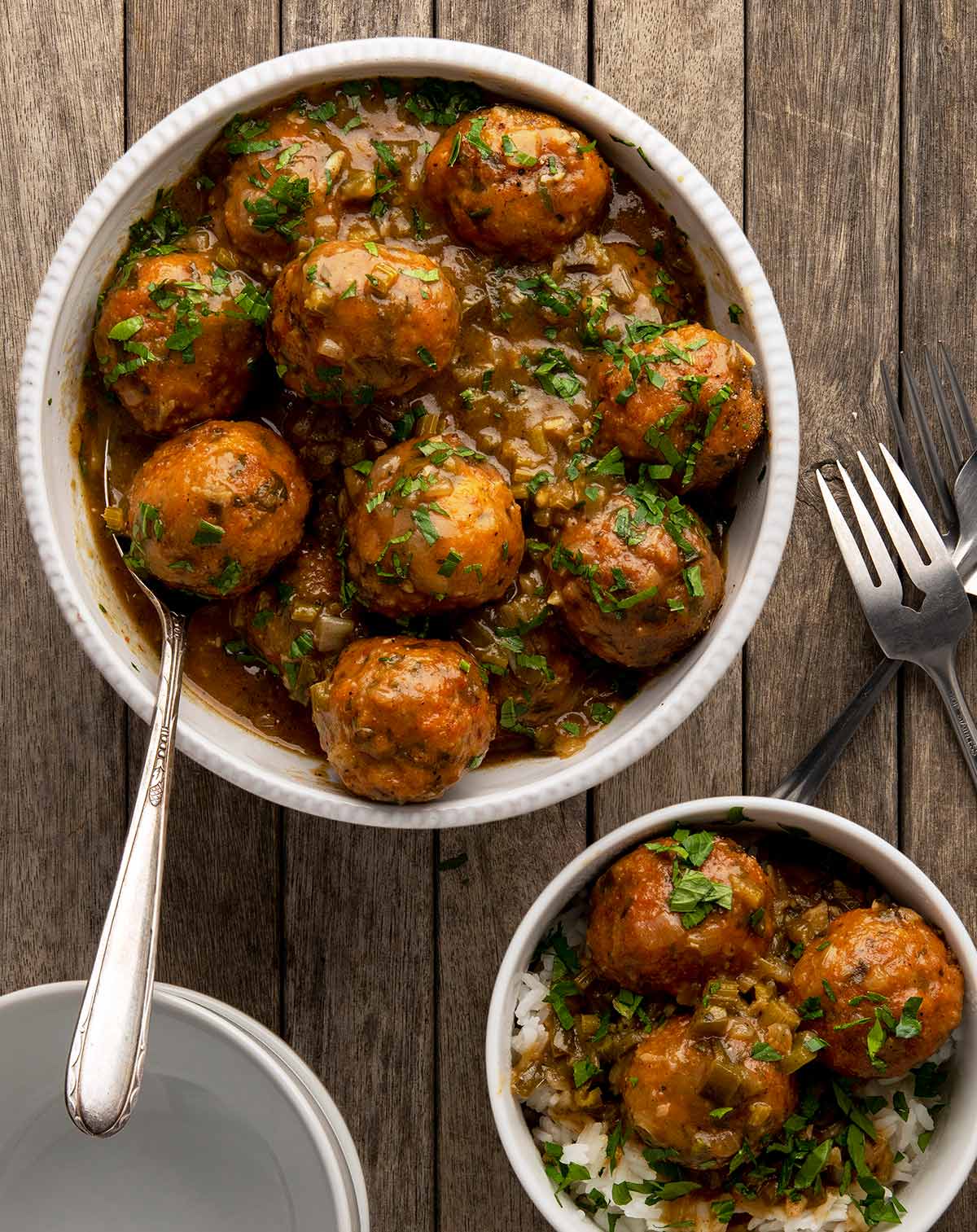 Serve gar balls with white rice garnished with green onions or parsley. You could cut them in half and serve in a Louisiana po’boy sandwich, too.