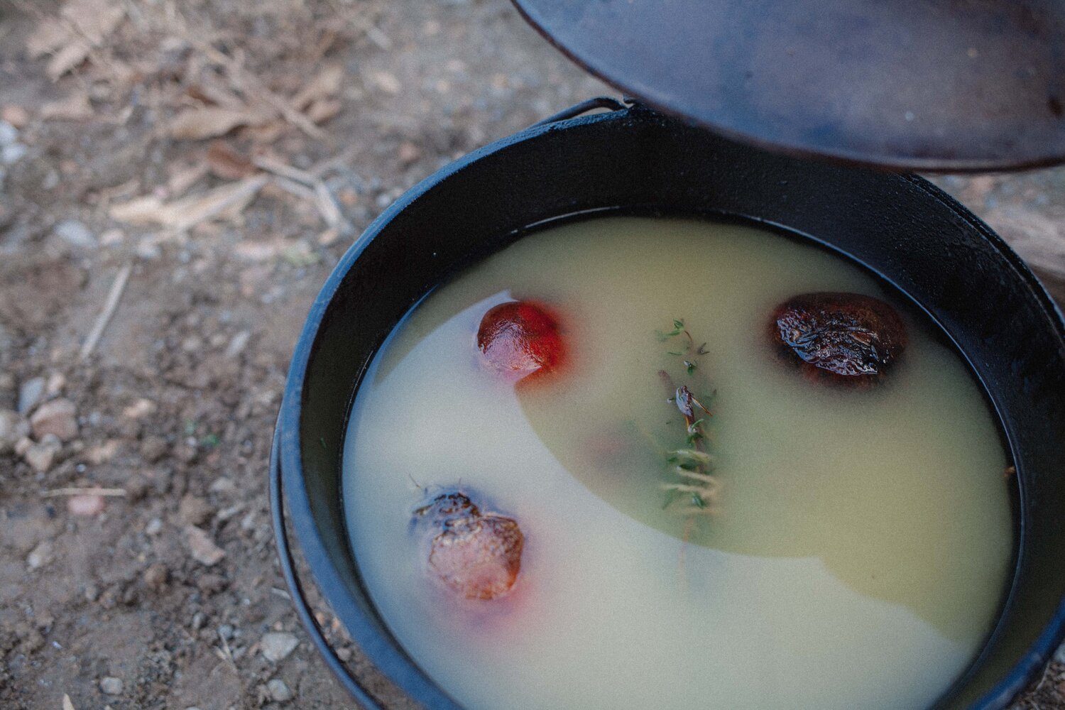 To prepare the beets: Place trimmed beets, herbs, and garlic in the cast iron pot and cover with duck fat. Place the pot into the huatia, heated to 300 degrees or more. Seal with dry earth and roast for about an hour, until tender.