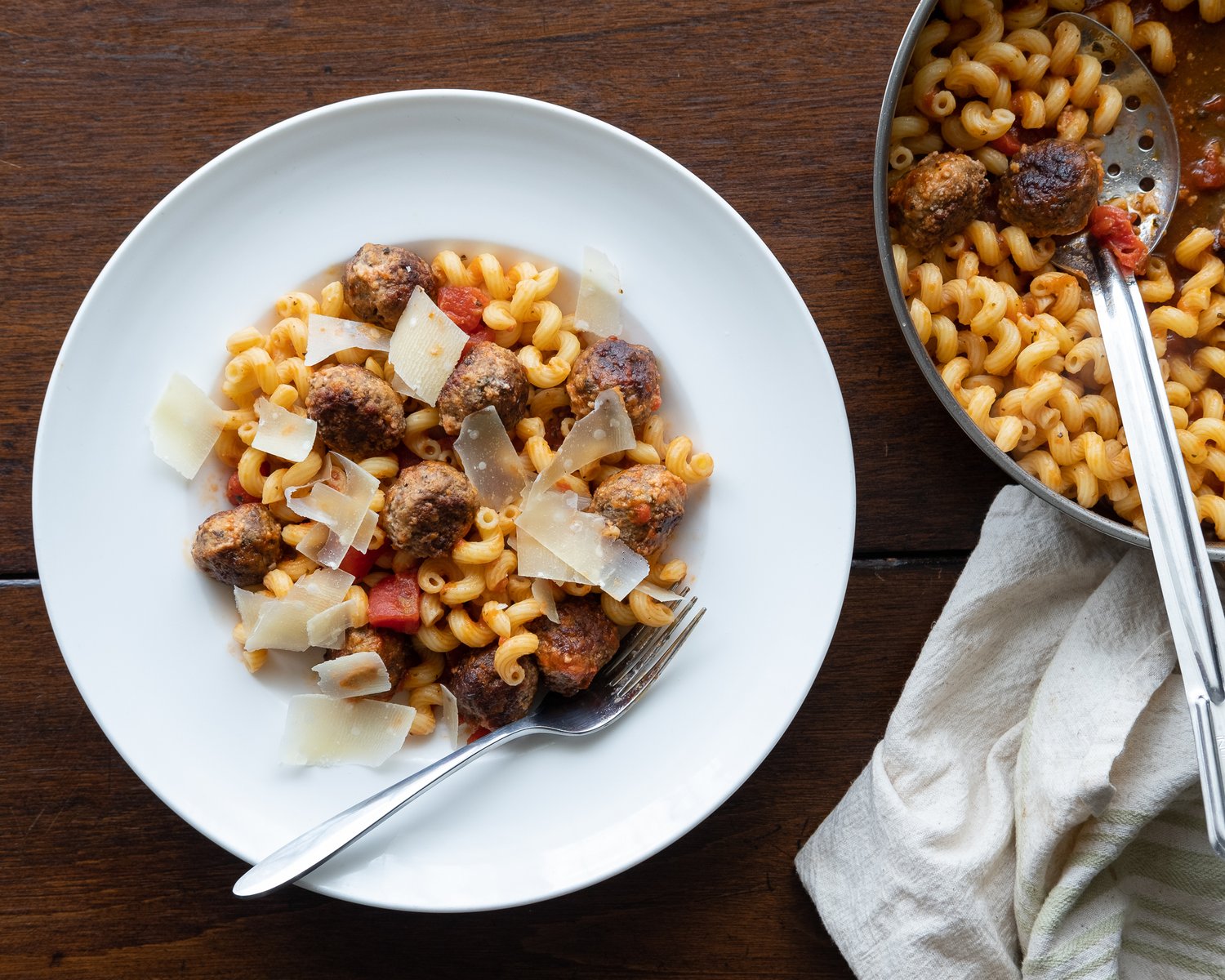 You can case the sausage if you want- we didn’t, because we were making the sausage for a friend who has alpha gal, the dreaded “red meat allergy” that is caused by a tick bite, and the pork casings would have meant he couldn’t eat it. So we kept this sausage loose, for pasta sauces, meatballs, and lasagna. Even without the addition of pork fat, the meatballs we made out of the sausage were perfect- not dry, not crumbly, but flavorful and succulent.