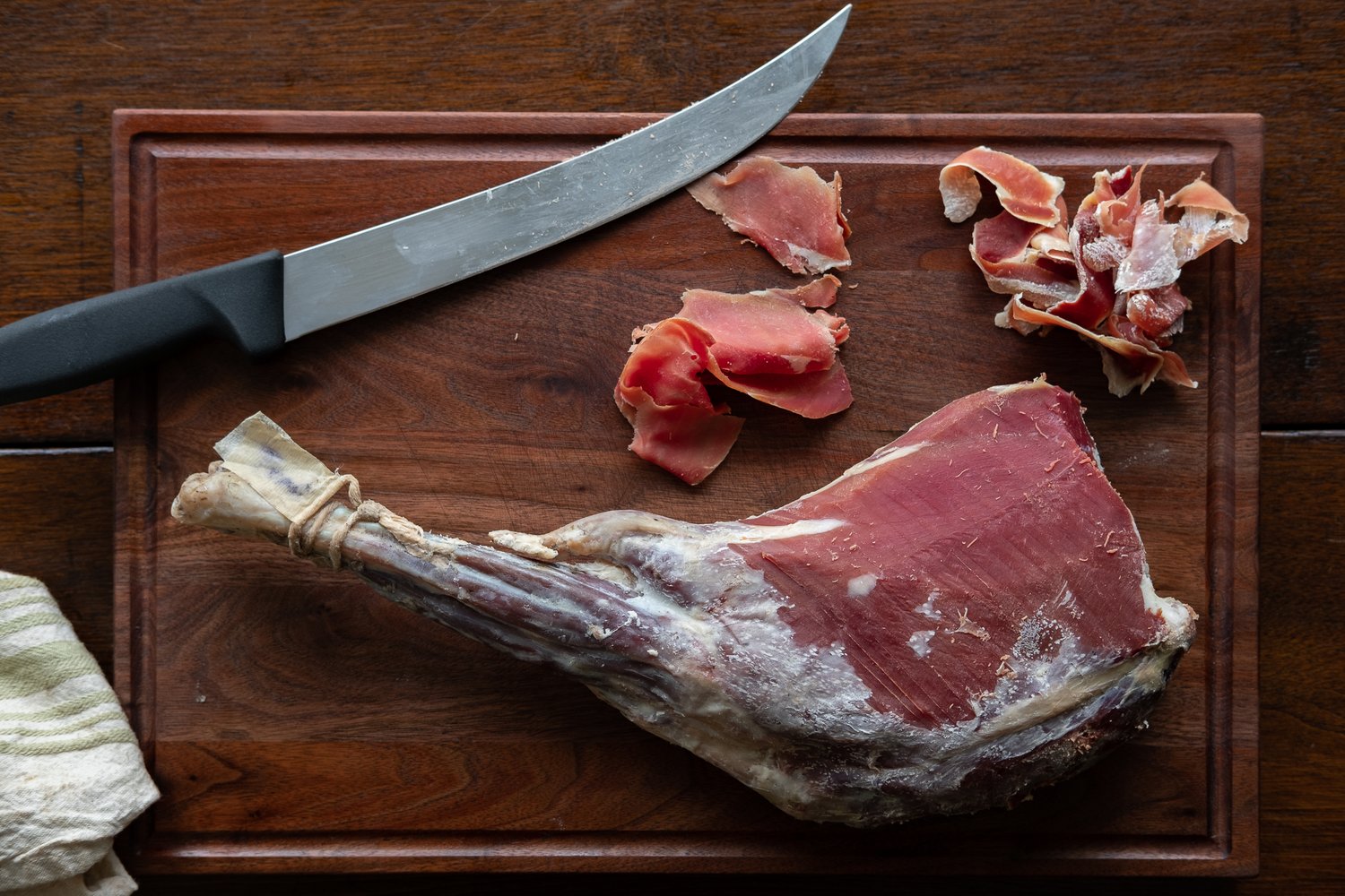 Scrape off any remaining strutto, trim the rind, and slice paper thin to serve.