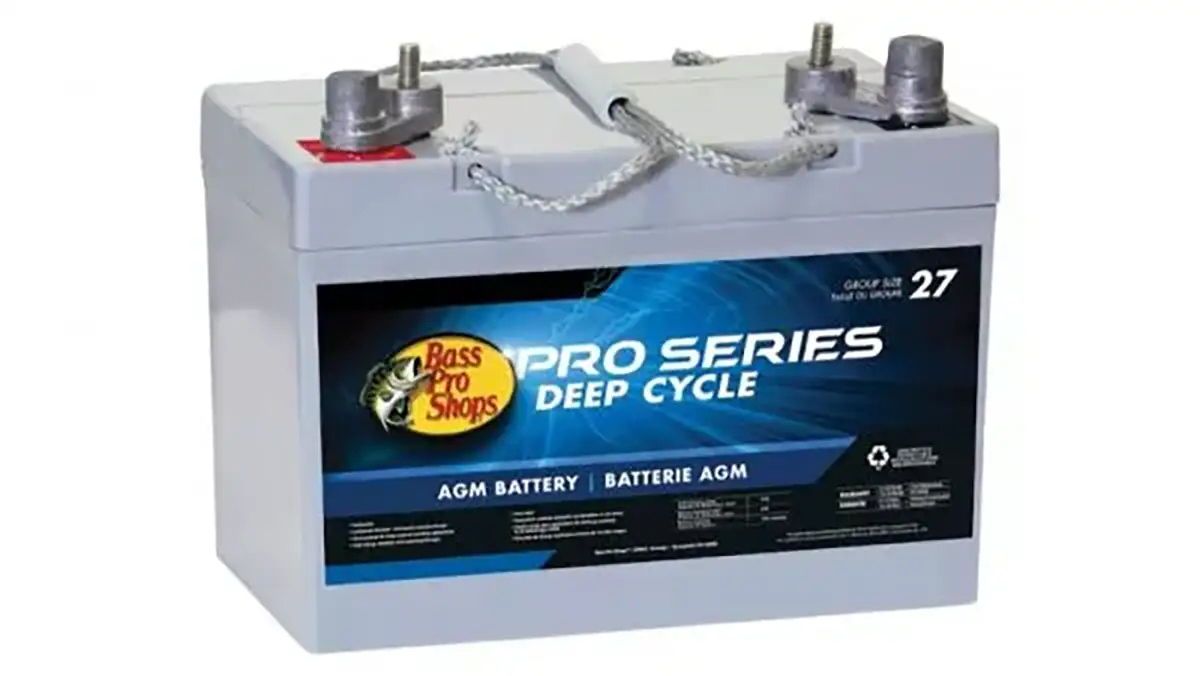 The Bass Pro Shops Power Series Deep-Cycle AGM Marine Battery delivers an expert-tested balance of battery life, power, and performance. The dual-purpose design allows cranking/starting and deep-cycle use, so you don’t need to load up on boat batteries. Just pick up this Bass Power boat battery for both operation modes. Our Power Series serves up a rugged build and a great warranty to match its worry-free performance. The Bass Pro Shops Power Series Deep-Cycle AGM Marine Battery brings exceptional cold-cranking amps, marine-cranking amps, and reserve capacity. The leakproof, vibration and impact resistant design ensures rugged performance even in rough water conditions. This Bass Pro marine battery provides free replacement in months 0–12 and pro-rated warranty in months 13–36.