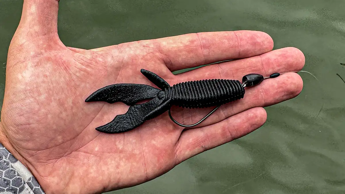 I transition to a beaver style plastic when fishing shallow laydowns or other types of hard cover. This bait has a fairly weediness profile and is great for fishing around moderate amounts of cover. This bait also has a small profile, making it my go-to option when searching for lots of bites. One of my favorite baits to use for this application is the Berkley MaxScent Creature Hawg. This is considered my “all around” flipping bait and is a great option for fishing the majority of shallow water cover.