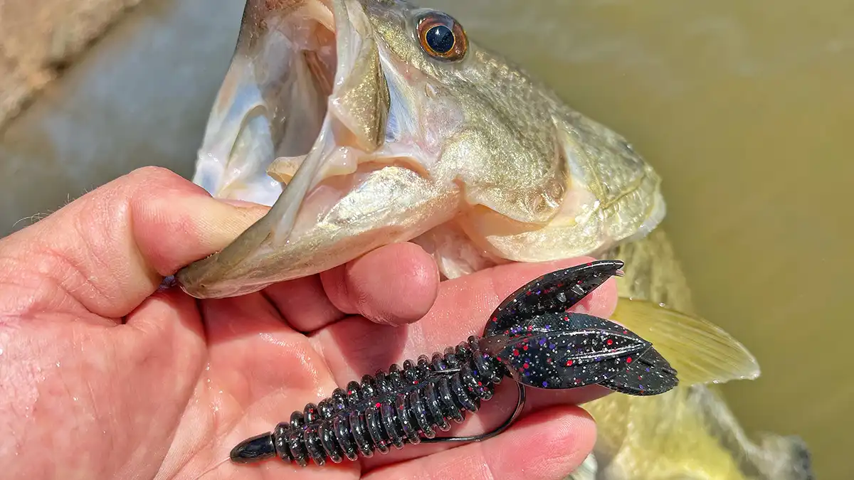 A bullet weight on a free rig is essentially an unpegged Texas rig. Many anglers now use bobber stoppers or pegs to keep the bullet weight close to the nose of a Texas rig. But, if you go with an unpegged weight, the bait can wash around freely a bit more, moving away from the weight a little. This rig is finessier and works better with lighter weights than you’d use with a traditional Texas rig as well.