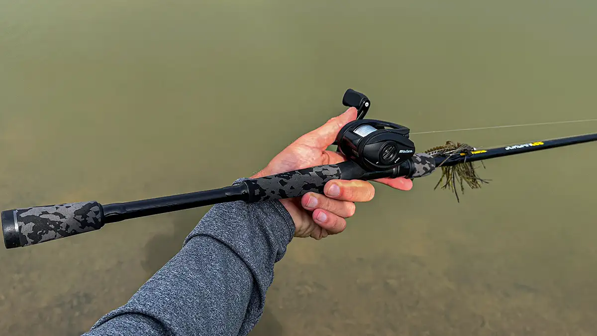 I’ve used this rod for everything from finesse jigs to fast moving reaction baits. While this rod is extremely versatile, I prefer to use it with a variety of moving baits. My biggest reason for this is the 6:5:1 gear ratio this combo is offered in. I prefer a slower gear ratio when throwing baits such as a spinnerbait or vibrating jig. I have a habit of quickly burning moving baits back to the boat. This is great for generating ferocious reaction strikes, however I tend to blowout my baits when using a higher gear ratio. This lower gear ratio ensures I’m fishing my bait at the ideal speed without compromising its action. Furthermore, the Jordan Lee Casting Rod has the ideal action for setting the hook on single hook moving baits. I generally pair this rod with 15-pound fluorocarbon and anything from a 1/4 to 1/2-ounce bait.