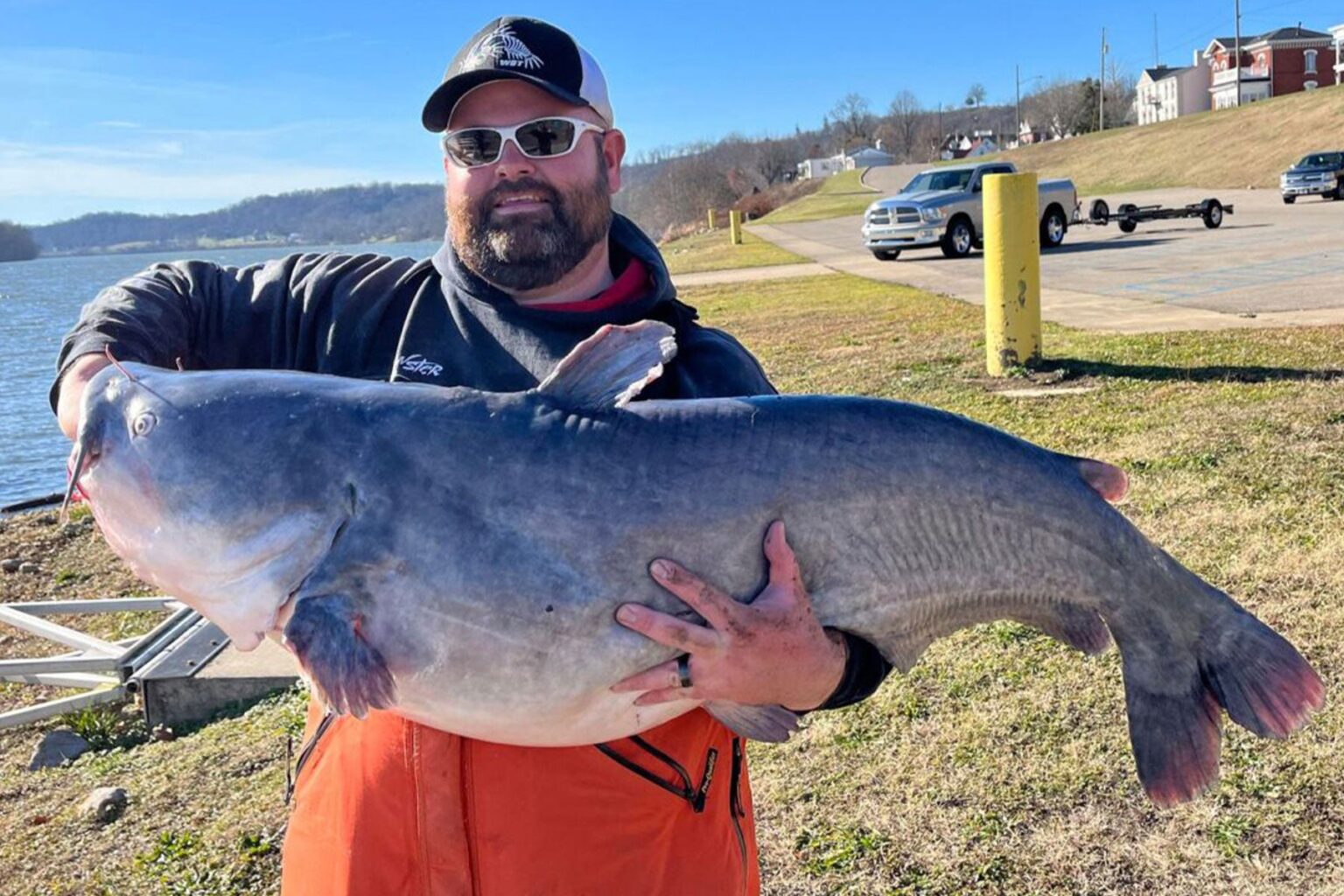 Earlier this month, angler Micheal John Drake hooked a giant blue catfish while casting cut shad in the Ohio River, about an hour northwest of Charleston, West Virginia. According to the West Virginia Department of Natural Resources (WVDNR), the big blue cat tipped official scales at 69.45 pounds, edging out the previous weight record by 36 ounces.