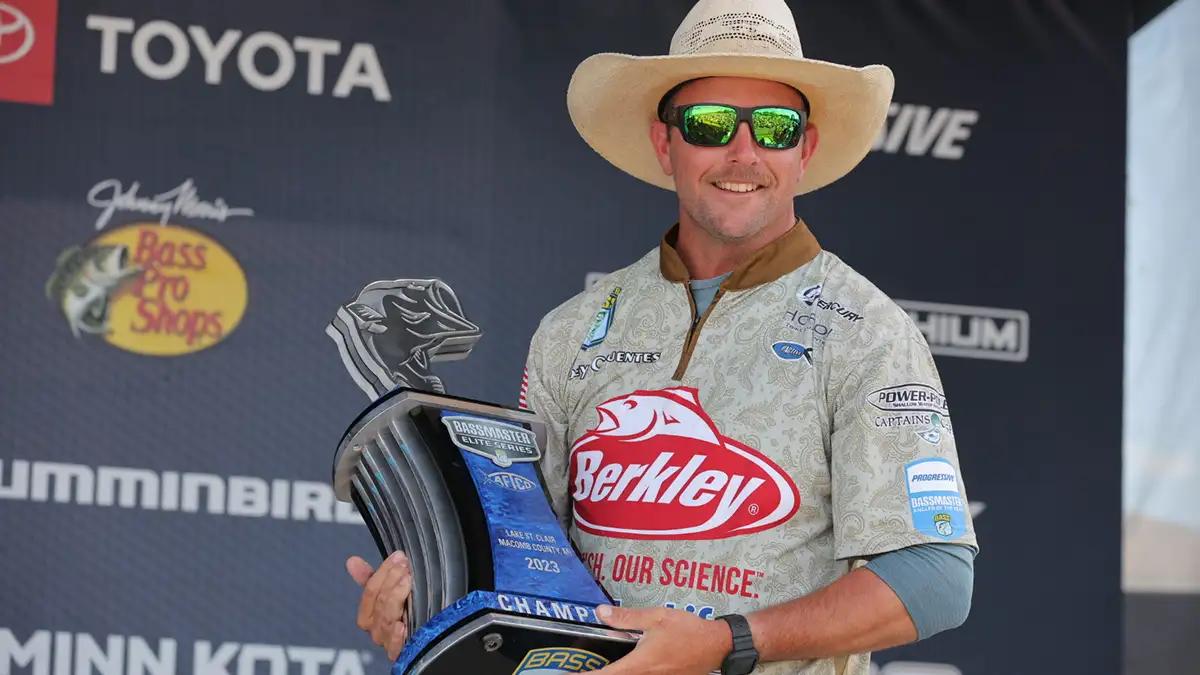 That bass helped “the Cowboy” claim his second victory of his rookie season on the Elite Series with a four-day total of 91 pounds, 8 ounces, outlasting Oklahoma’s Luke Palmer by 1-2 ounces.