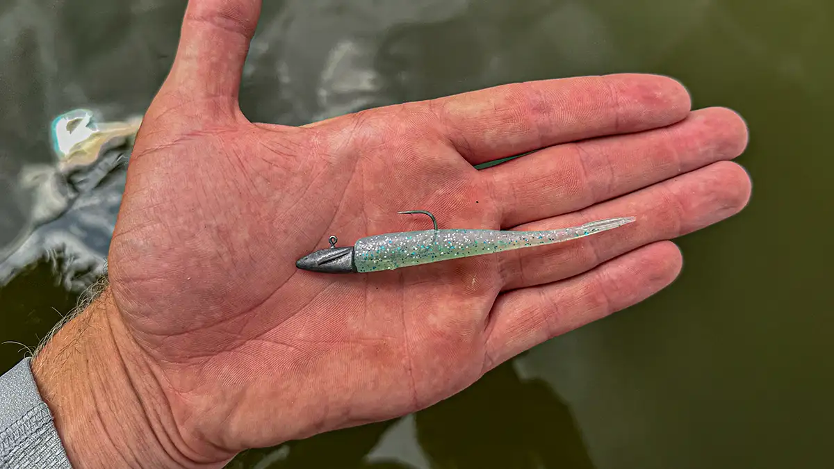 Another application where this bait shines is targeting suspended fish keyed in on bait. For this application I like to rig the flat side of the bait facing upwards in order to achieve this jig and minnow action. I will then cast my bait at specific fish using live sonar and continuously twitch it above their heads. The quivering action of this bait paired with its razor sharp hook is a great way to catch fish that are actively chasing bait.