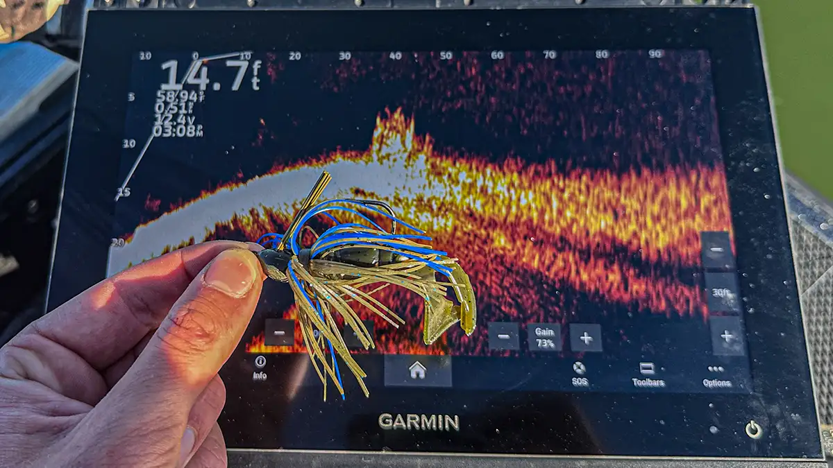 Up until the creation of forward facing sonar, the art of fishing a jig has largely stayed the same. It has traditionally consisted of a long cast, letting it sink to the bottom, and dragging the bait back to the boat. While this is still an effective way to catch bass, forward facing sonar allows you to cast at specific fish and structures without any wasted time.
