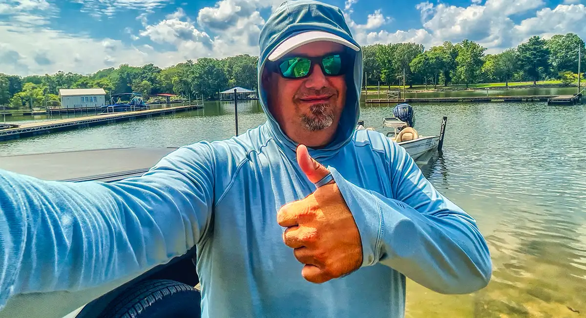 The Elevate Hoodie sleeves have this elongated flap that can cover your hand and you can loop it over a finger or thumb to keep the back of your hand out of the sun while you fish. Or if you prefer, you can tuck it under and have a normal cuff on your hoodie. I really like the hand cover. A lot of guys like to loop it over their middle finger, but I got in the habit of putting it over my. thumb. Kept my fingers free while still covering half of the back of my hand. With it on your middle finger it will cover the whole back of your hand. But I will admit I got a hook in the loop while tying a knot on a lure. That’s why I switched to my thumb. So just be mindful of that loop and it will be fine on your finger.