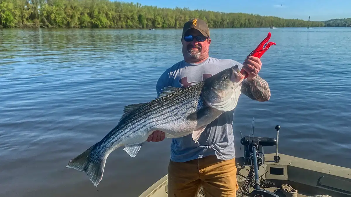 Many stripers caught in these situations are part of vitally important spawning classes and should be treated with extreme care. Please consider keeping fish in the water throughout the duration of the unhooking and measuring process. If you plan on taking a fish out of the water for a quick picture, fish grippers and an extra hand should be used to help safely control and support the body weight of the fish.