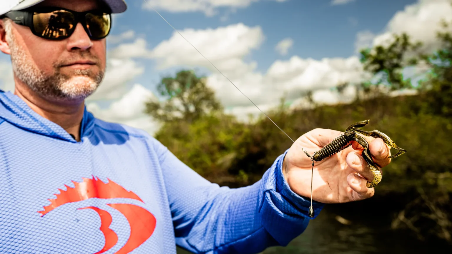 Clausen emphasizes the importance of bait choice for spawning bass. You can catch fishing using a range of soft bait profiles, but creature baits excel. They may appear more threatening to the nest, but whatever the reason, Clausen likes a buoyant creature bait with multiple appendages and some water-displacing bulk.