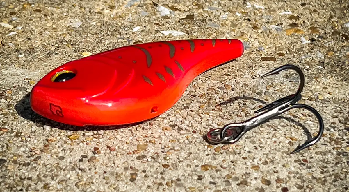 The Trapline RipKnocker blends the body of a lipless crankbait with the hook harness of a line-through swimbait. Much like a big swimbait, a lipless crankbait can be pretty hefty. As a bass thrashes back and forth, the weight of these baits can give the bass just enough leverage to throw the lure.