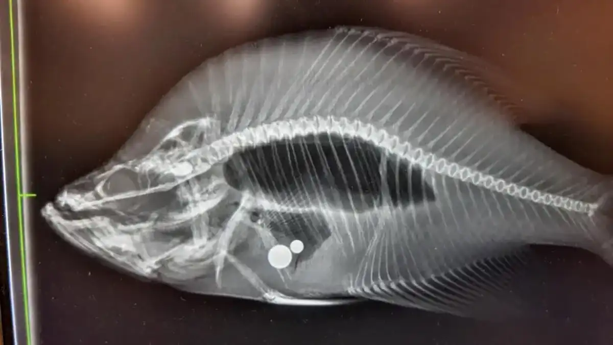 The KDWP went to Parhurst’s home and asked to examine the fish as he still had it in his feezer. The fish was voluntarily submitted and KDWP officials scanned the fish with a metal detector and got a ping. So they sent the fish off to the Topeka Zoo where it was x-rayed and found to have two large bearings in it.