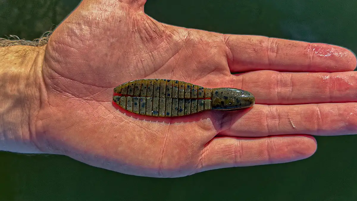 The Keitech Flex Chunk comes in two different sizes, making it easy to pair with most jigs. I typically pair this bait with anything from a 3/8 to 1/2-ounce jig due to the trailer’s thicker profile. This bait performs well on casting, flipping and football jigs and is a great choice when tying to imitate baitfish. This trailers subtle gliding action makes this bait extremely effective when targeting large bass in thick cover.