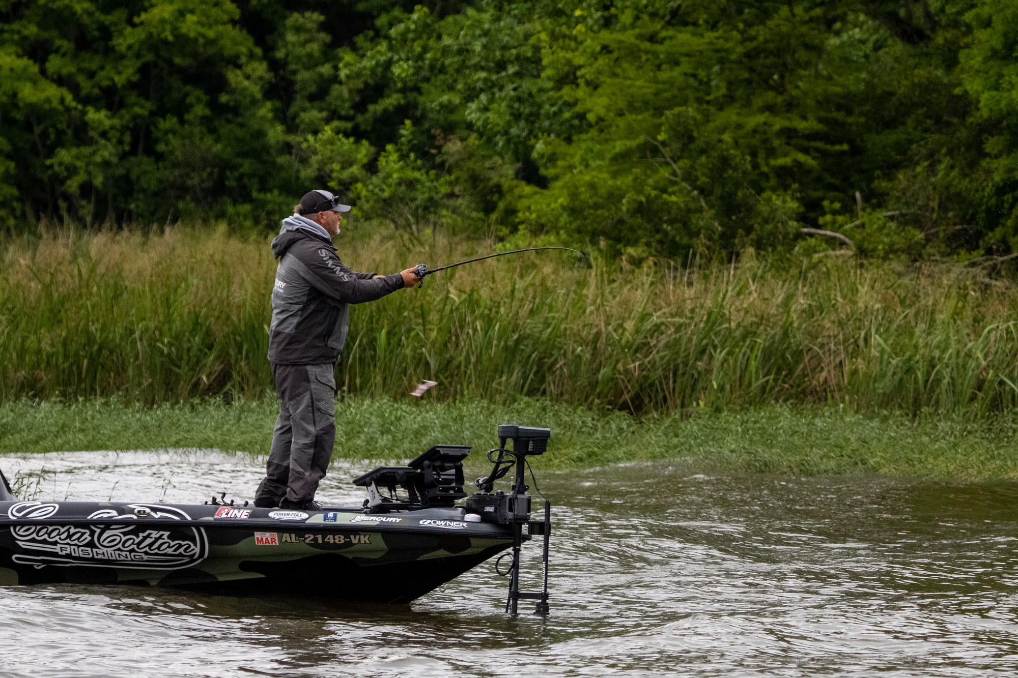“The biggest problem that happens when we have a lot of rain is somebody will get on a shallow bite, where they can catch them in the grass,” said Canada. “Then, they’ll turn the water off up the lake and keep running it on the lower end. You’ll go out one morning and the water will be down 3 to 5 inches. That’s not a big deal, but on that lake, when the water goes down a few inches, it just shuts the largemouth down. You can go out there and strap 20 pounds one day swimming a jig, pitching in the grass, and then they drop that water 3 or 4 inches, it only takes a little bit, and it’s over.”
