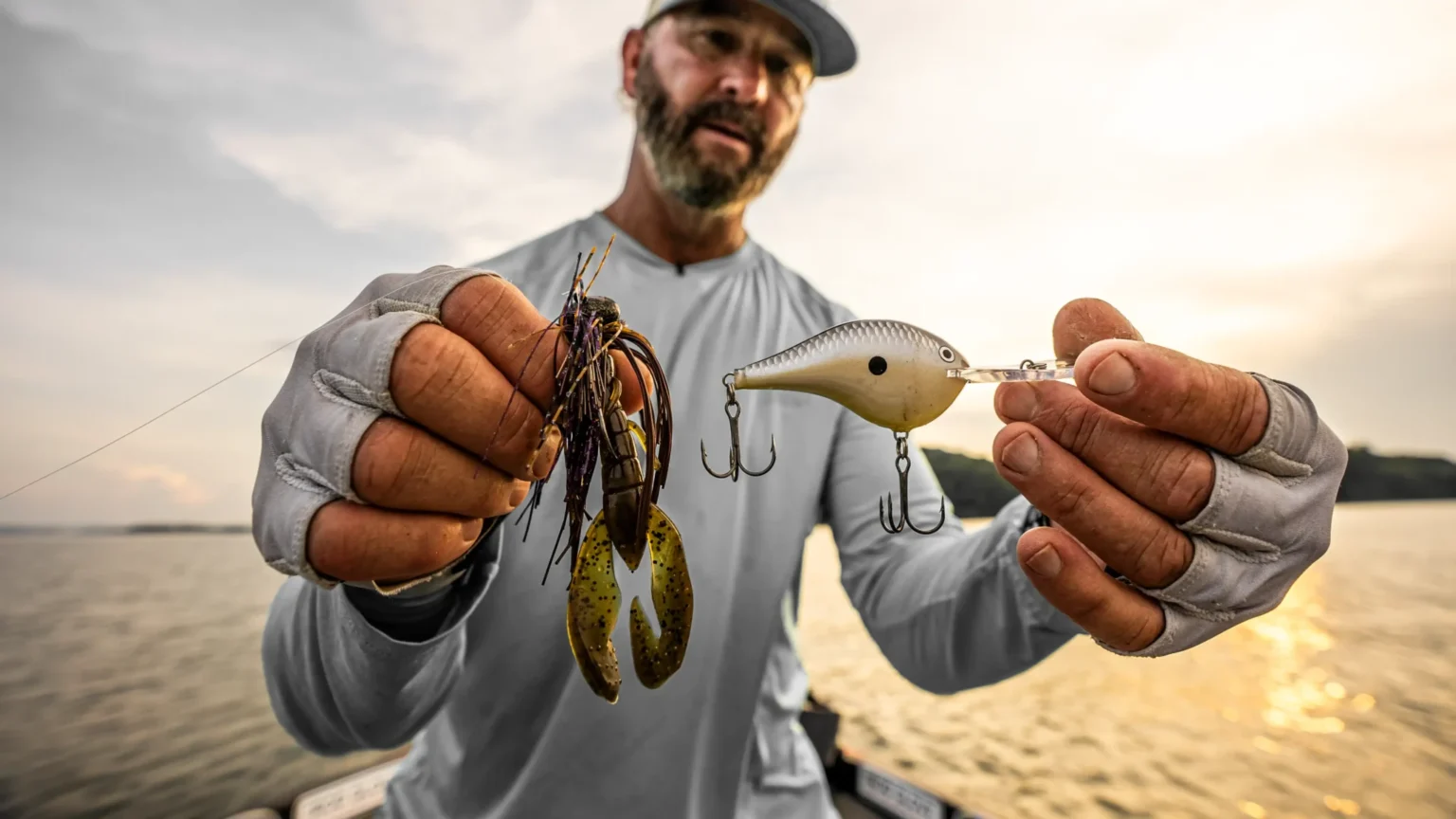 As the summertime sweat and frustration kicks in, GMAN highlights the necessity of adapting bait choices due to the persistent floating grass – a common challenge during this time of year on the TVA. Swindle likes to keep a mop-style jig at the ready for when A. The fish get accustomed to his DT-20, or B. The floating grass is too thick to even throw a crankbait.