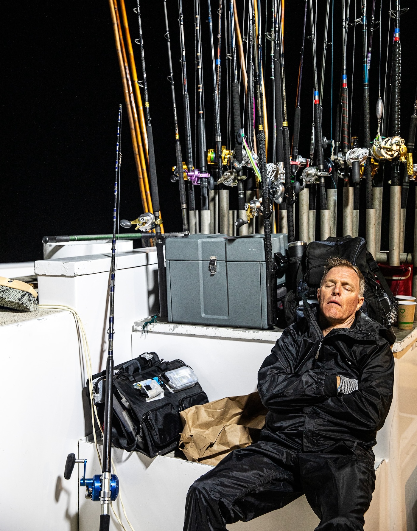 The SoCal charter scene is competitive. Select handfuls of trusted boats, known as “code groups,” swap info about fish and conditions over a coded radio channel to avoid broadcasting to every ship around. (Though they’re separately-owned charters, the two boats photographed in this story — Spirit of Adventure and Shogun — are in the same code group.)