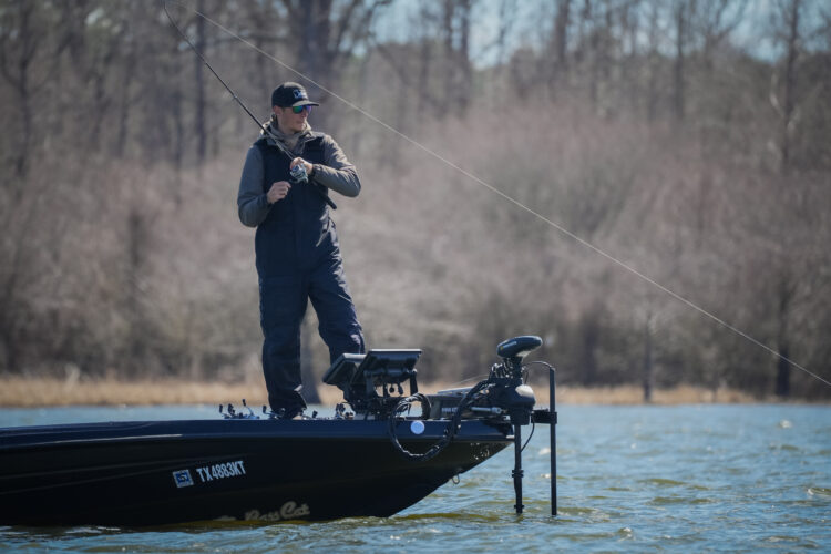 “I’m fishing an area where I’ve never caught fish, as much as I’ve fished this lake,” he said. “I struggled so bad in practice on the part of the lake I normally stay in, I decided to go to the other end. I went shallow and deep, shallow and deep, and I just found those couple places. I wasn’t committed after practice; I went out today with 15 rods on deck. But, they’re staging spots, and I think with this warm weather I might have some fish coming to me.”