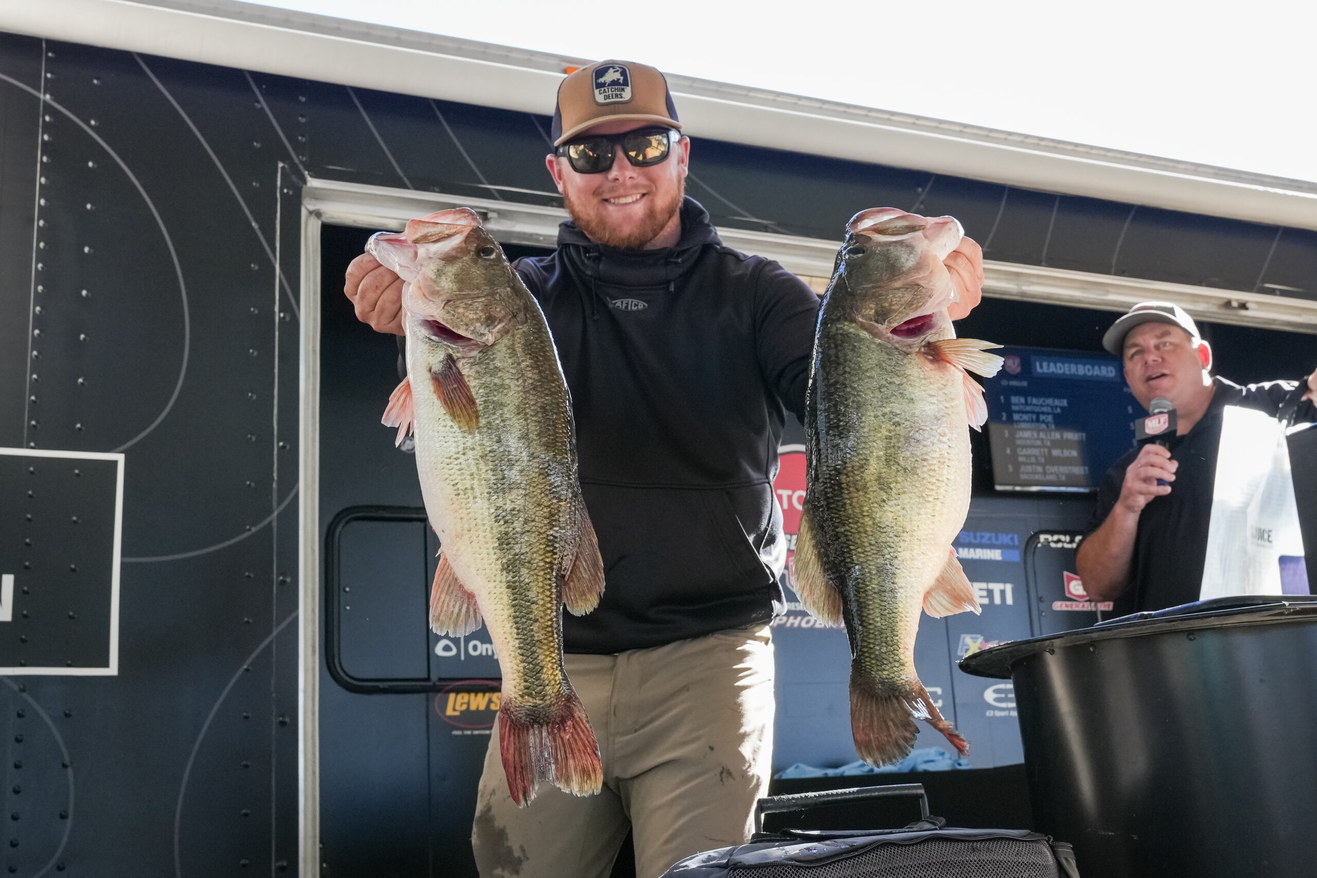 BROOKELAND, Texas – Day 1 of the Toyota Series Presented by Phoenix Boats Southwestern Division event on Sam Rayburn was a certified smashfest. Colby Miller dropped 27 pounds, 4 ounces to claim the lead. Right behind him, River Lee sacked up 27-2, and Wyatt Frankens brought 26-14 to the scale. In all, eleven different pros weighed over 20 pounds on Day 1, which should make the next two days very compelling.