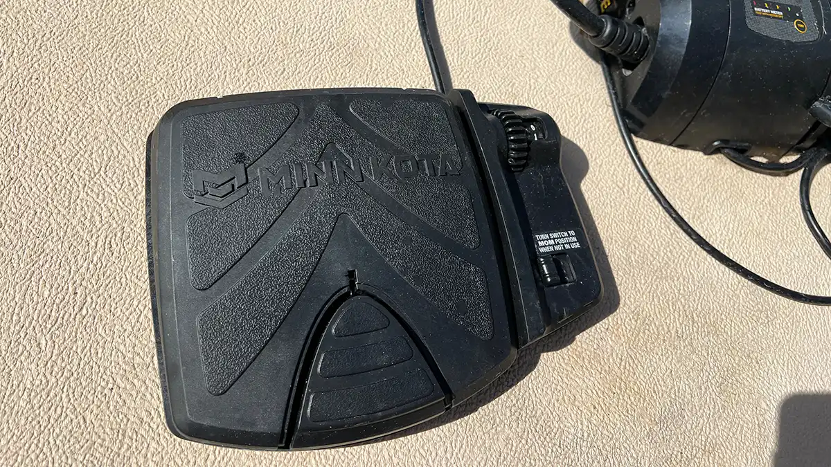 If you’ve used a foot-controlled, cable-steer trolling motor on a bass boat a good bit, this electric foot pedal will take a little getting used to. It works well, it simply works differently. With a “traditional” cable-steer foot pedal, pushing down on the front of the pedal with your toes turns the trolling motor to the right. Pushing down on the back with your heel turns the motor to the left. With this foot pedal, stepping on the right of the pedal turns right, and stepping on the left turns left.
