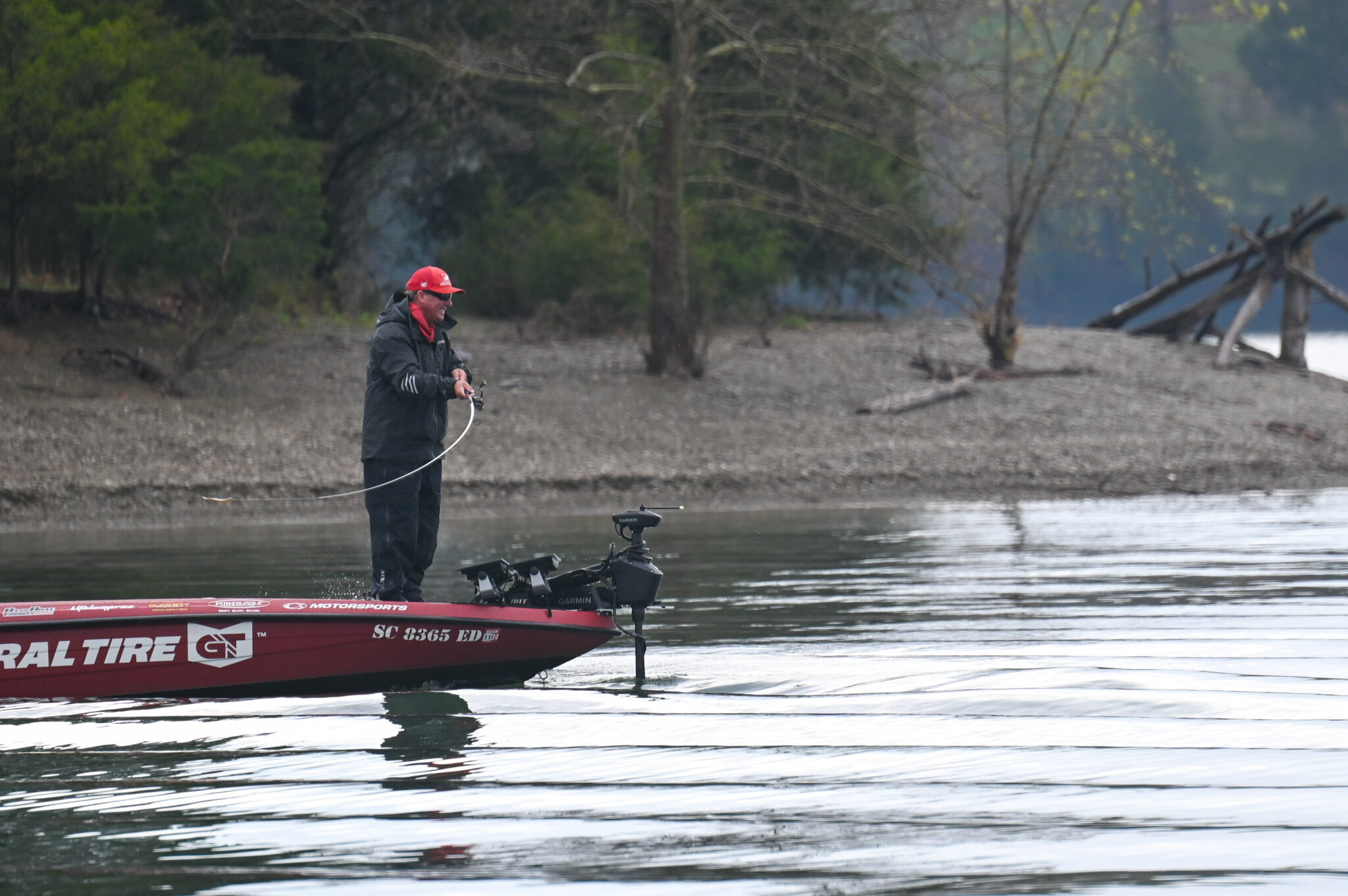 Myers caught his Day 1 total using the same technique — a jighead minnow and forward-facing sonar — but did so much shallower, due in large part to gusting winds that forced him to stay in protected pockets and coves. But something he noticed Tuesday gave him a clue about a pattern he thought he might be able to replicate around the lake given the right conditions.