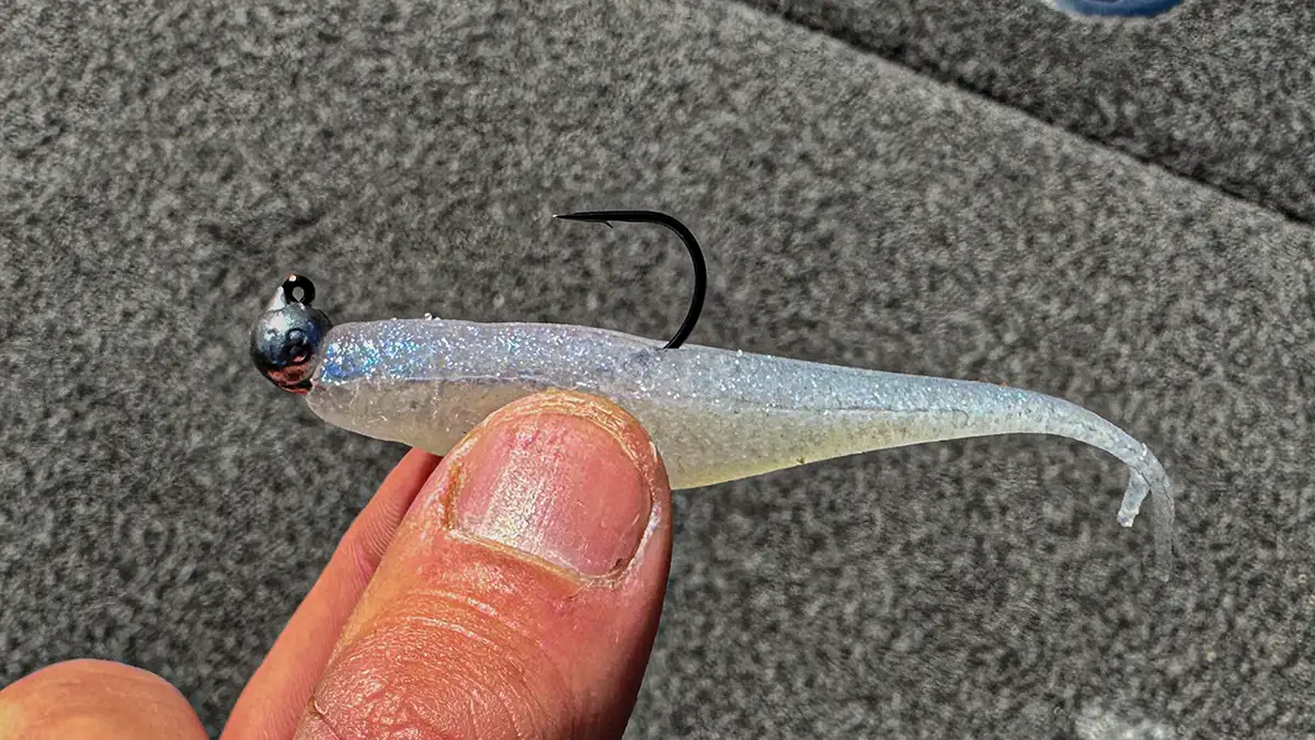 Having the right setup is another essential component for finding success with the Range Roller Jighead. This jig head pairs perfectly with a Deps Sakamata Shad on a finesse style setup. A spinning rod paired with light line is the preferred setup when throwing this bait. I generally stick with 10-pound braid paired with a 10-pound fluorocarbon leader. Two great line options for this technique are Strike King Contra Braided Line and Berkley Trilene 100% Fluorocarbon.