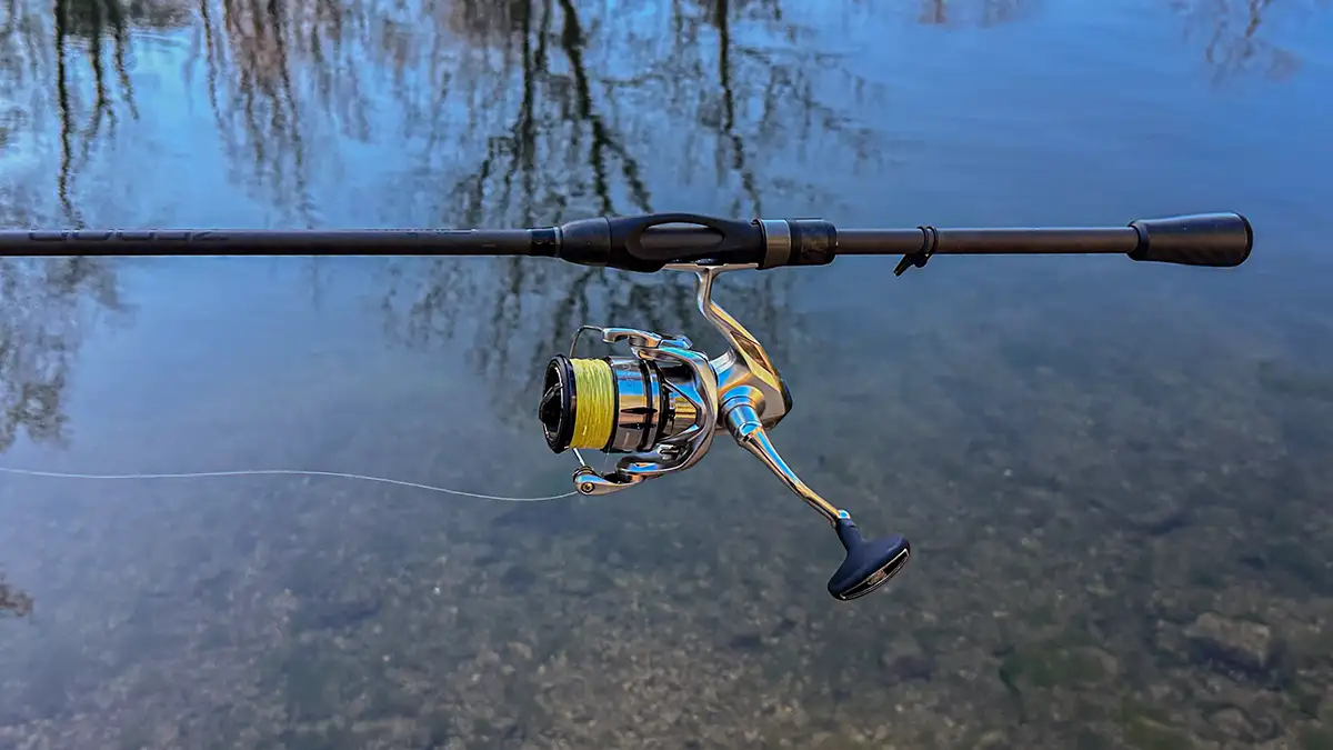 For a reel, I prefer one with a 3000 sized spool and a smooth drag. The larger spool allows for a faster retrieve while a smooth drag delivers consistent pressure leading to a greater landing percentage. This is extremely important when throwing finesse style baits on light line. One of my favorite reels to use for this technique is the Shimano Stradic FL Spinning Reel in the 3000 size.